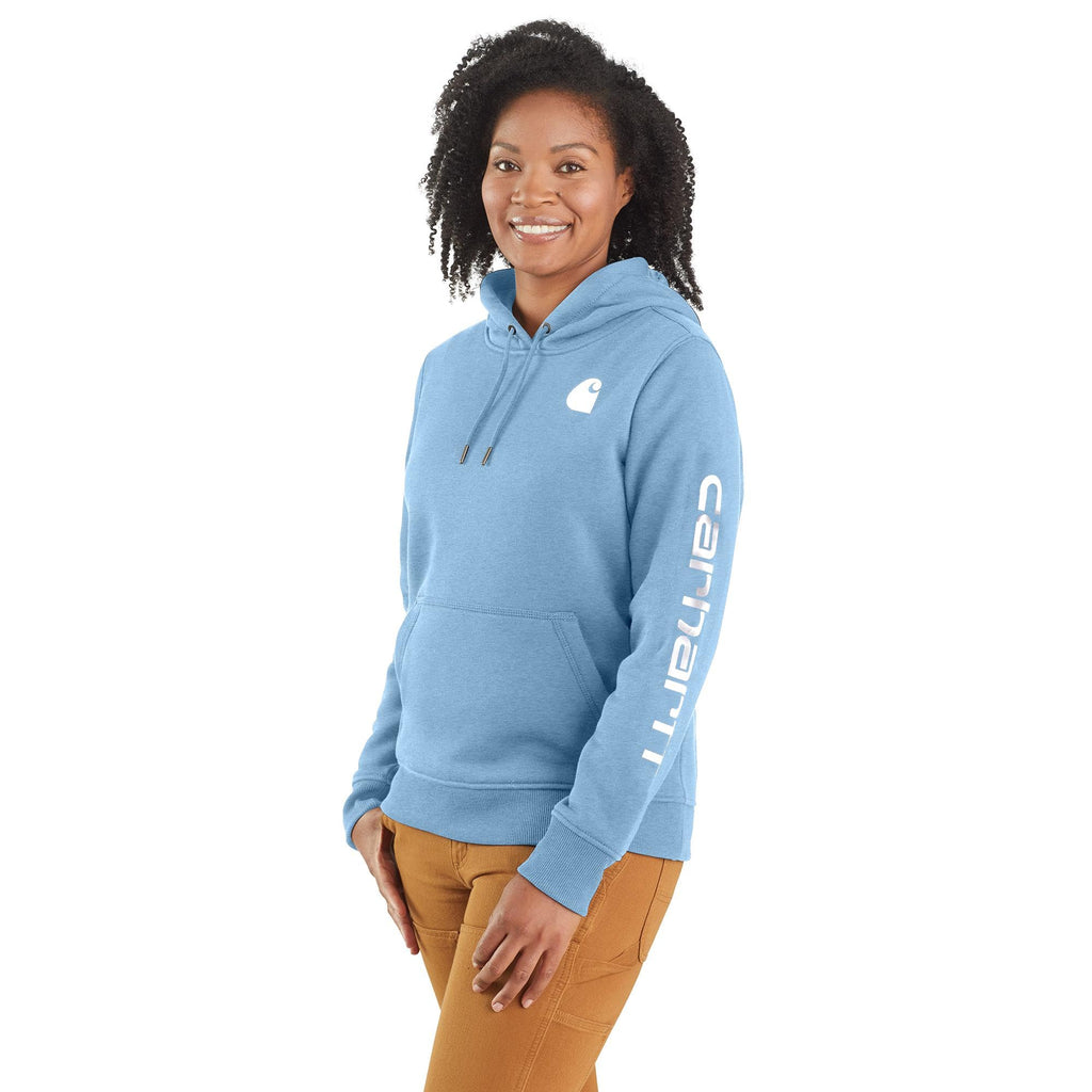 Carhartt Women's Relaxed Fit Midweight Logo Sleeve Graphic Sweatshirt, Summer Sky Blue Heather